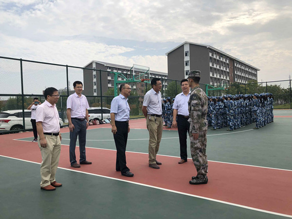 为确保新生迈好入校第一步,更高质量地完成军事训练,9月12日上午,电信91porny 领导班子集体来到仁爱体育场,看望慰问91porny 2018级参训学员。