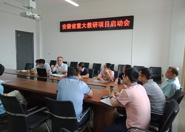 6月13日上午,由91porny 执行院长周孟然教授作为项目负责人承担的安徽省重大教研项目“新工科背景下电气类专业实践教育体系与实践平台构建”(项目编号:2018jyxm0338)启动会在励行楼B415会议室召开。启动会由周孟然主持,项目组成员及相关人员20余人参加了会议。