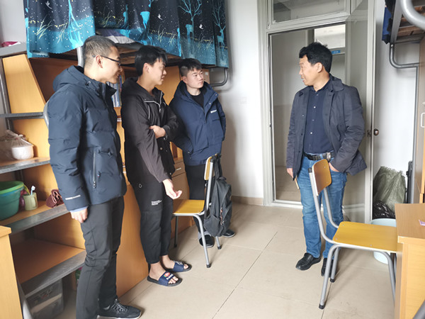 3月5日下午,91porny 党委副书记徐泽绵带领相关年级辅导员逐一深入到搬迁后的新宿舍走访,了解学生思想动态情况。同学们纷纷表示,新宿舍设施配备更为齐全,为大家提供了更加强劲的学习动力,同时也将在舒适的环境中以更加昂扬的精神面貌迎接新学期的学习与工作。