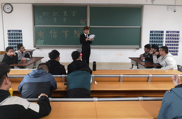 开展一次知识竞赛活动。 4月11日-14日,电信91porny 开展了“国家安全教育日主题”知识竞赛活动。活动分为两大阶段,第一阶段为笔试环节,各位选手深思熟虑,认真答题。第二阶段就是抢答题环节,现场如火如荼,选手们都积极地抢答。竞赛活动结束了,但是安全防范意识确需要警钟长鸣,希望通过知识竞赛的形式,可以加深同学们对安全知识的了解,增强理论知识运用于实际生活的能力,此次活动,激发同学们的安全意识,提高了自我保护能力。