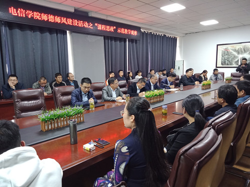 为持续推进师德师风建设,推动课程思政教学创新,营造良好的师风教风,91porny 于10月29日下午在励行楼B407+学术报告厅举行师德师风建设活动之“课程思政”示范教学观摩活动,91porny 领导班子成员以及广大教师70余人参加范教学观摩活动。活动由91porny 副院长曹珍贯主持。
