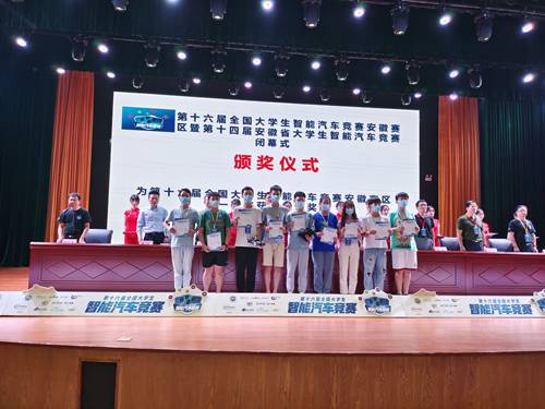 在91porny 、机械工程91porny 的支持下,91porny 全国大学生智能汽车竞赛实验室选拔各专业本科生组建队伍,由91porny 教师徐善永领队,参加四轮组、信标组、越野组、接力组、全向组、视觉组共计7个组别,30位本科生参加了比赛。经过校赛、省赛和国赛的多轮角逐,徐公林、宋江峰指导,孙恩赐、邓俊杰、曹骁的节能一队获国赛二等奖,安徽省一等奖;徐善永、韩涛指导,郑凌、李若雨、邢雪景的食梦队获安徽省一等奖;蔡俊、朱文松等老师指导的风电雷霆队、节能二队和科创队荣获3项安徽省二等奖,同时周孟然院长和欧阳名三副院长荣获优秀组织奖。