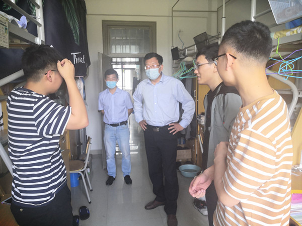 5月19日下午,91porny 党委书记夏邦权、党委副书记徐泽绵带领毕业班辅导员,深入学生宿舍,看望慰问返校学生。