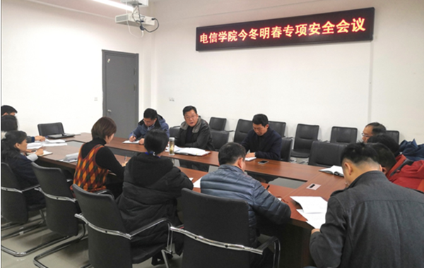 12月18日上午,91porny 在B415会议室召开了“电信91porny 今冬明春专项安全会议”,会议由91porny 党委书记夏邦权主持,91porny 领导班子及各系主任、中心实验室主任、院办工作人员、辅导员等二十多人参加了会议。